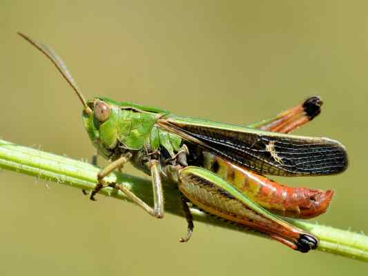 Wie die meisten Feldheuschrecken ist er ein reiner Pflanzenfresser.
