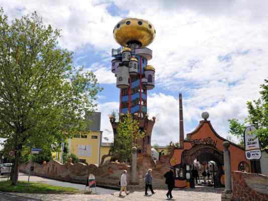 Das Wahrzeichen von Kuchlbauers Bierwelt ist ein Architekturprojekt des weltbekannten Künstlers Friedensreich Hundertwasser. Angenehme runde Formen, tanzende Fenster, wellige Böden und organische Linien, Zwiebeltürme und Pflanzen, das sind die Elemente Hundertwassers für menschengerechtes Bauen im Einklang mit der Natur.