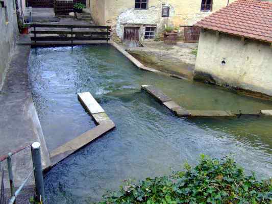 Könnte man meinen, wenn man hier an der Gailachquelle steht und sieht, wie das Wasser kräftig aus dem Juragebirge fließt. Bei der Schneeschmelze und nach starken Regenfällen werden bis zu 1.000 Liter pro Sekunde gemessen. So viel Wasser ist ausreichend, um Mühlen anzutreiben.
